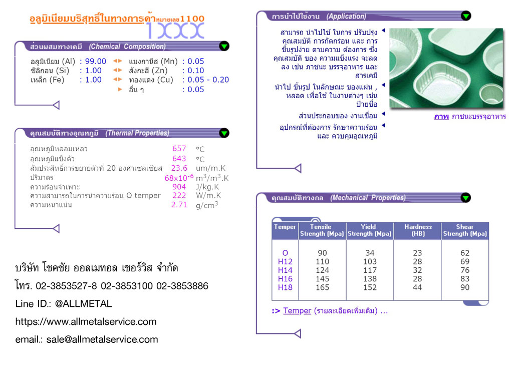 :: คุณสมบัติ อลูมิเนียมแผ่น 1100 ::