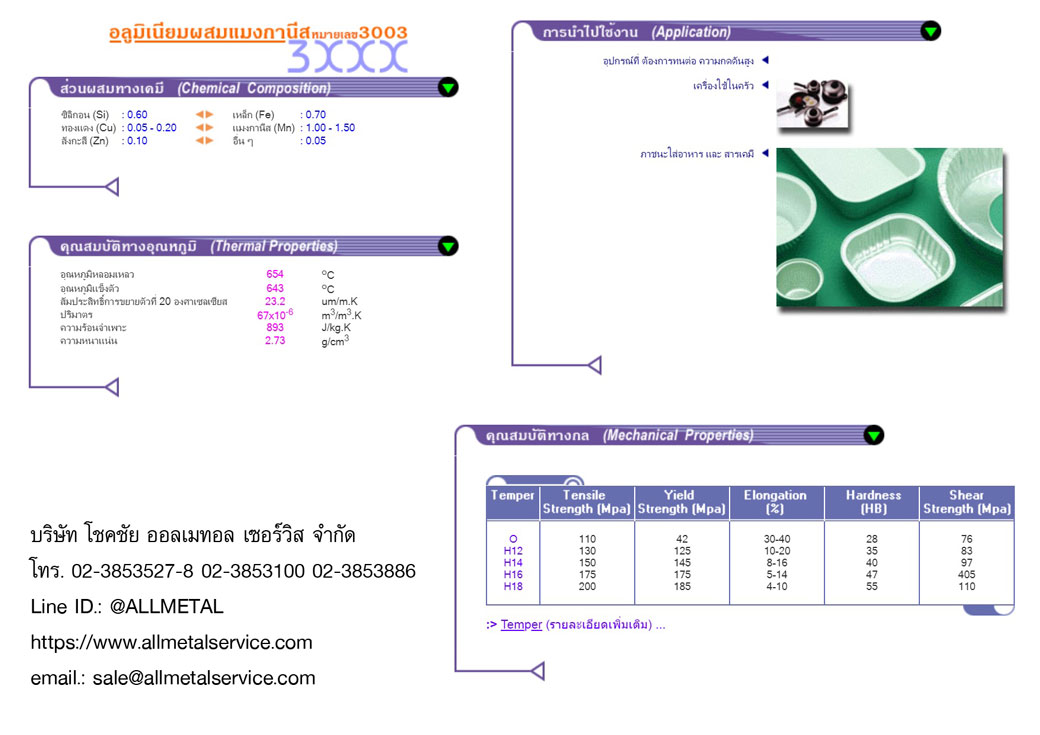 :: คุณสมบัติ อลูมิเนียมแผ่น 3003 ::