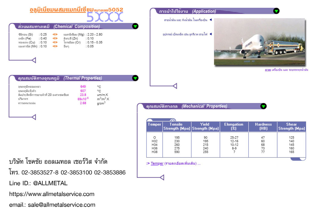 :: คุณสมบัติ อลูมิเนียมแผ่น 5052 ::